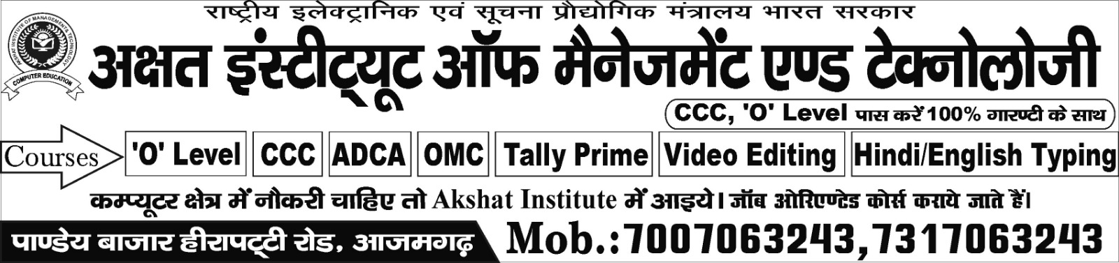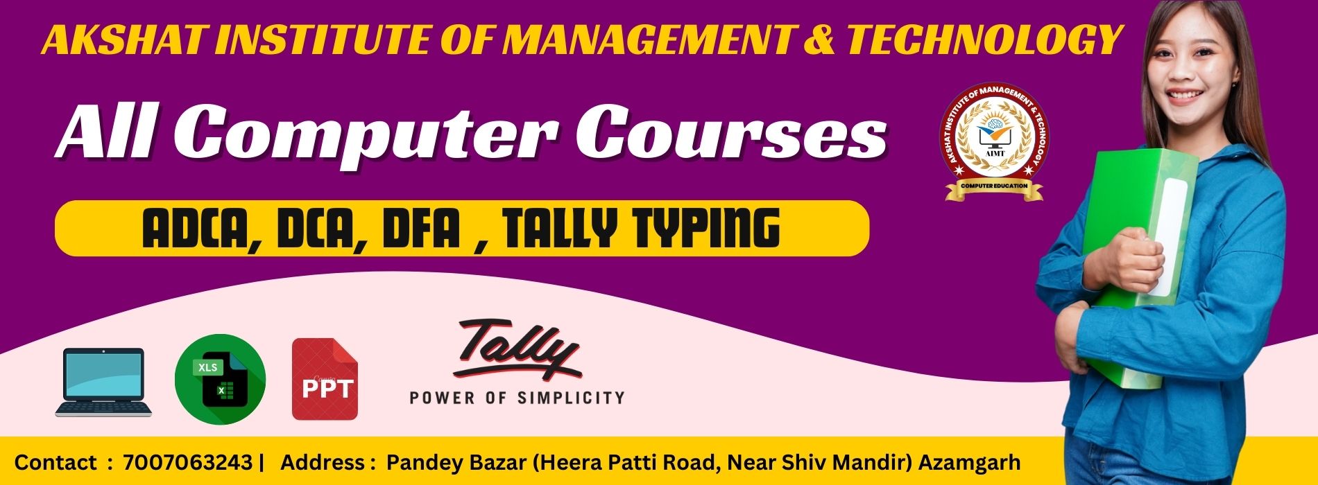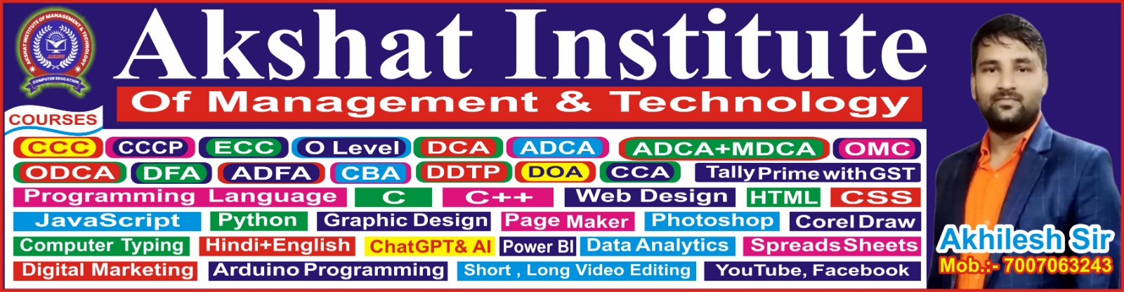Welcome to Akshat Institute of Management & Technology, a trusted name in computer education. Located in Azamgarh, we are committed to empowering students with the latest knowledge and practical skills in the field of computer technology.
